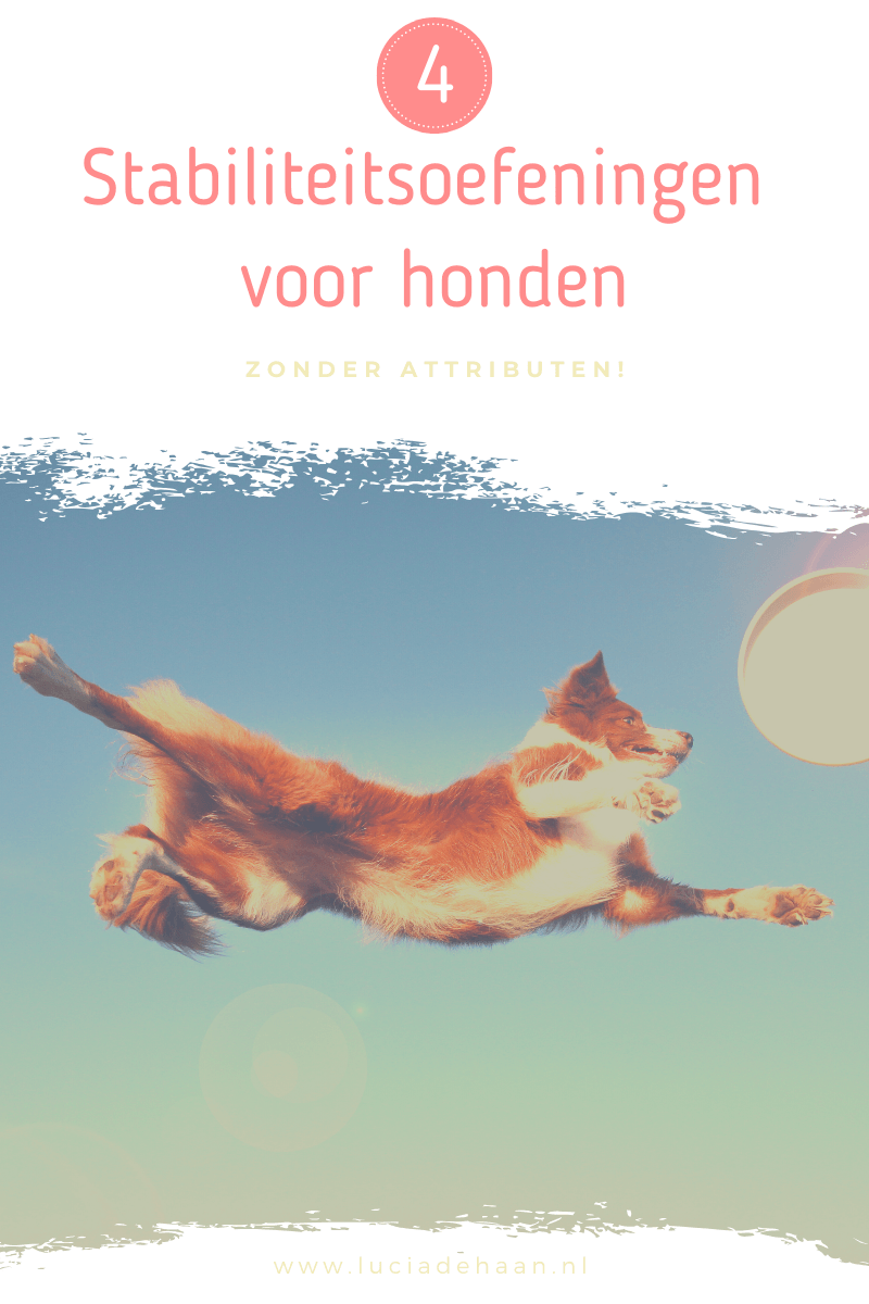 Voor honden zijn er enorm veel verschillende stabiliteitsoefeningen, je kunt er zelfs les in volgen! Ook zijn er allerlei attributen op de markt, zoals balansballen en cavaletti. Als je hierin geïnteresseerd bent, raad ik je zeker aan om eens een proefles of een workshop te volgen. Het is een superleuke manier om met je hond bezig te zijn èn hij wordt er fysiek ook nog eens beter van! Houd je het liever simpel en laagdrempelig, dan zijn hier een aantal oefeningen die je gewoon thuis, zonder benodigdheden (behalve koekjes ;) ), uit kunt voeren: